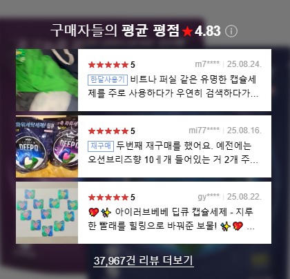 요즘 빨래량이 많아지면서 세제 선택이 정말 중요해졌어요. 여러 제품을 비교해보다가 아이러브베베 딥큐 3in1 고농축 캡슐세제 100개를 써봤는데, 만족도가 정말 높았어요.