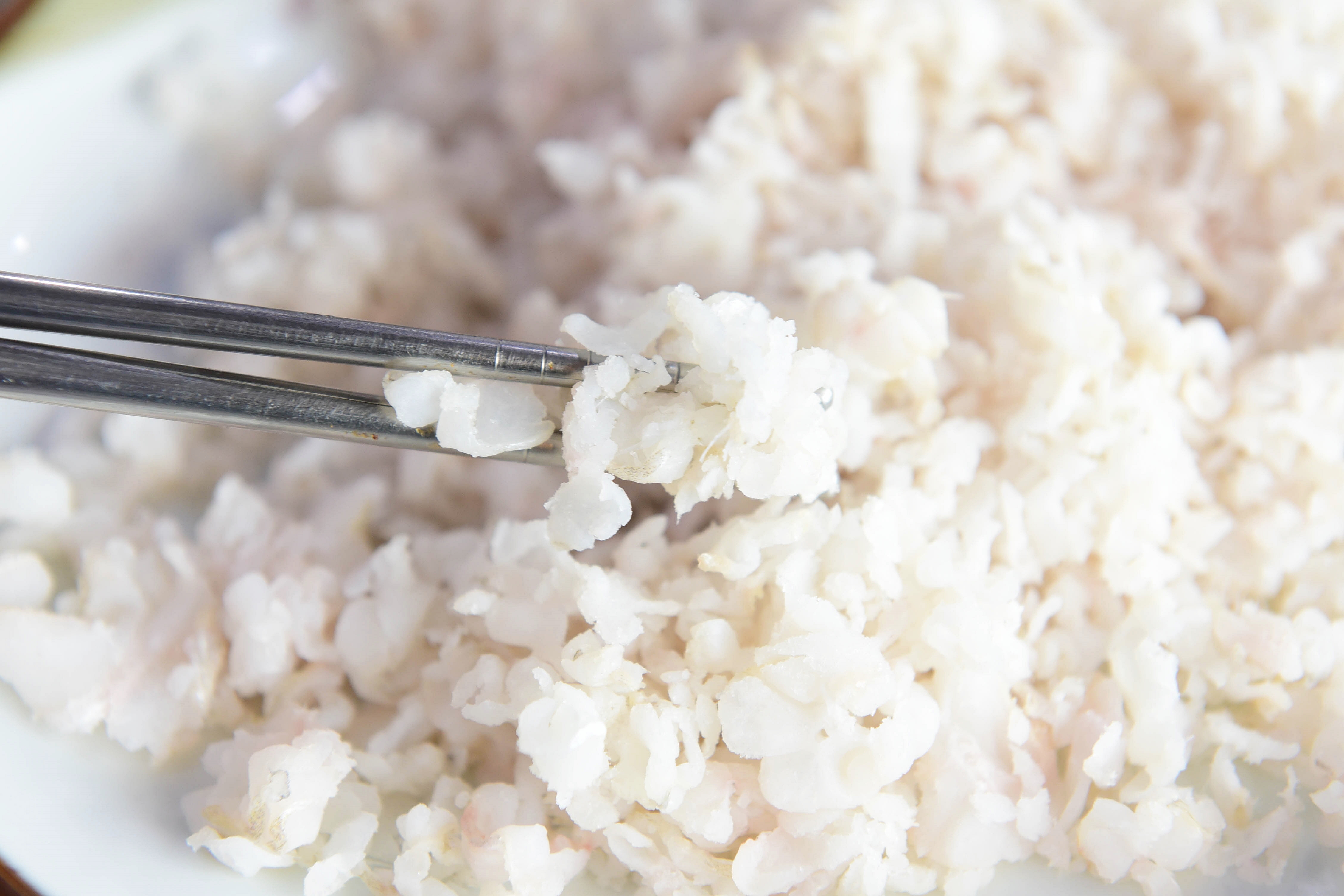 젓가락으로 집기에 어려울만큼 잘게 다져진 아나고 세꼬시는
