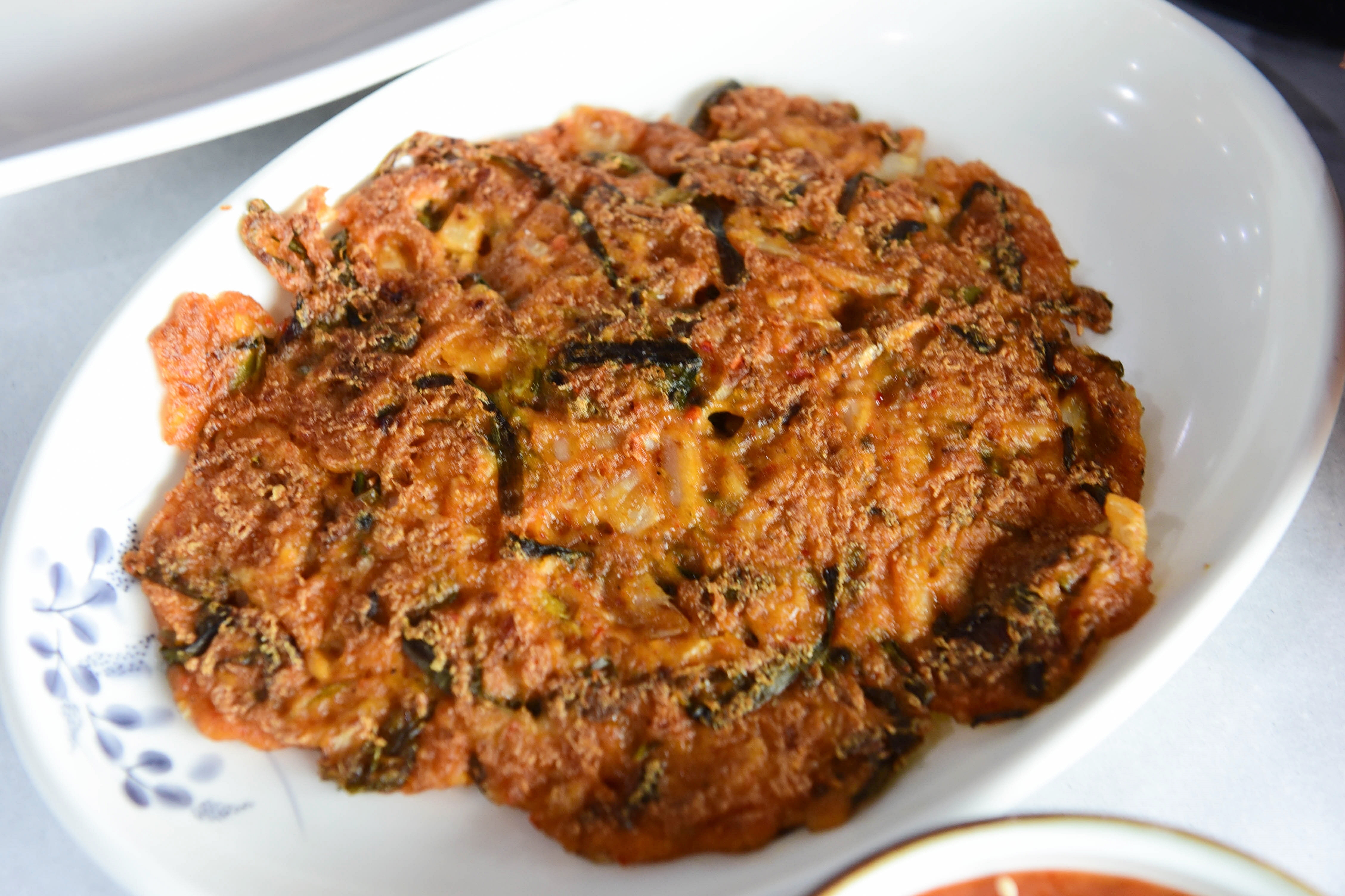밀가루를 많이 쓰지 않고 김치를 진짜 듬뿍 넣고 만든 부침개라