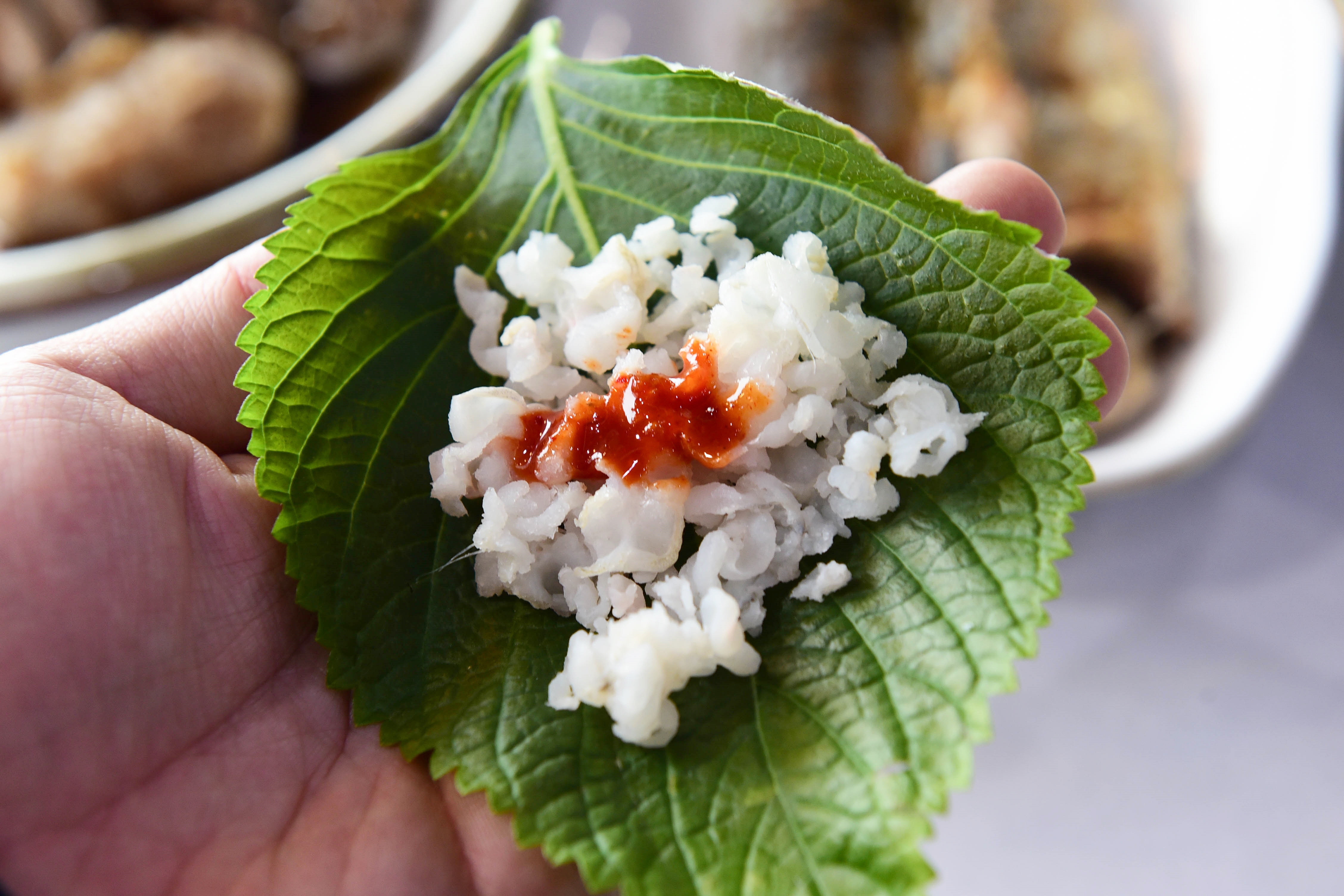 향긋한 깻잎의 향과 까슬까슬한 식감은 부드러운 아나고 세꼬시와는 정반대이면서도 아주 잘 어울렸어요.