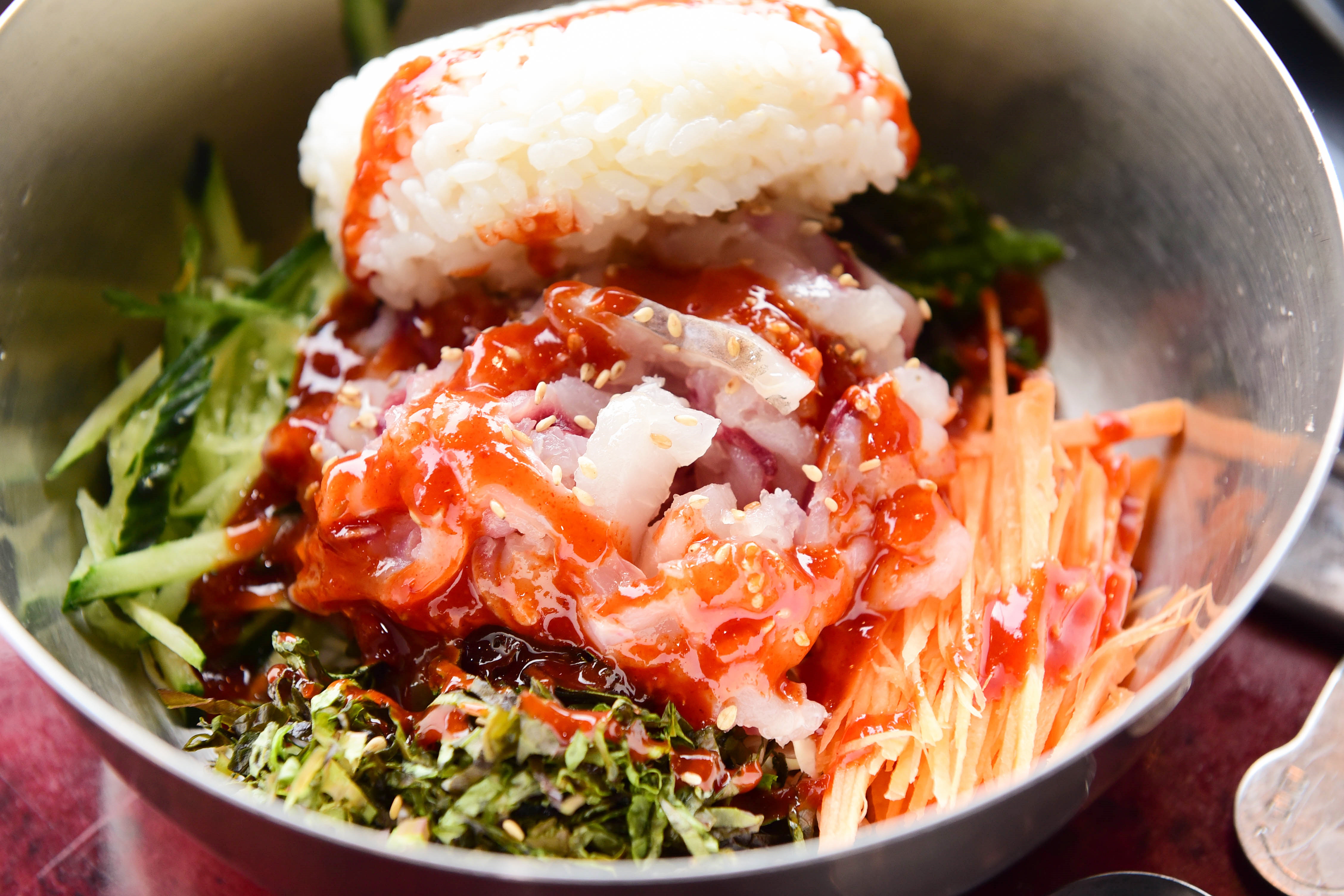 식사는 회덮밥으로 주문을 하게 되었습니다!