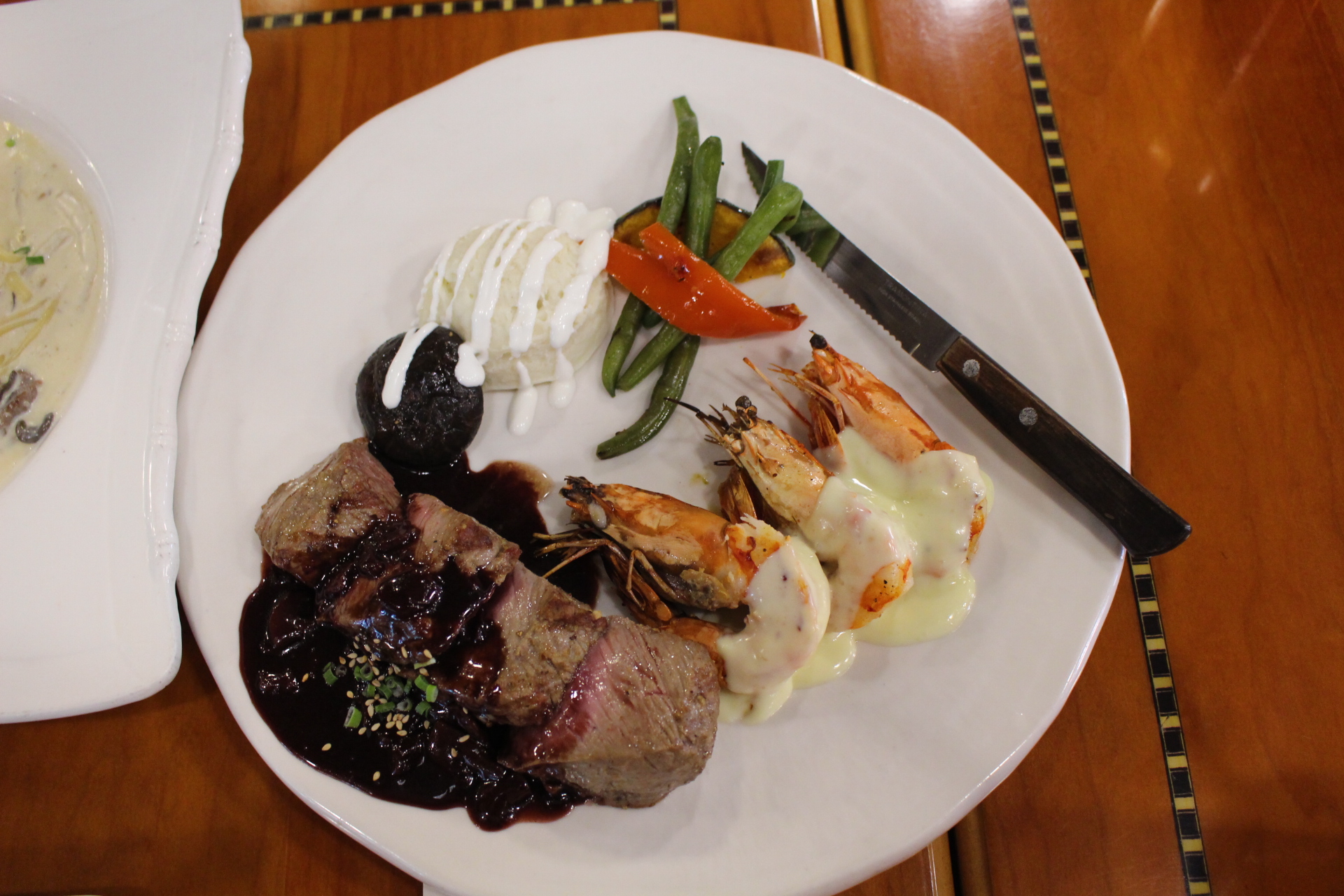 스테이크를 먹은 뒤에 쉬림프도 냠냠-