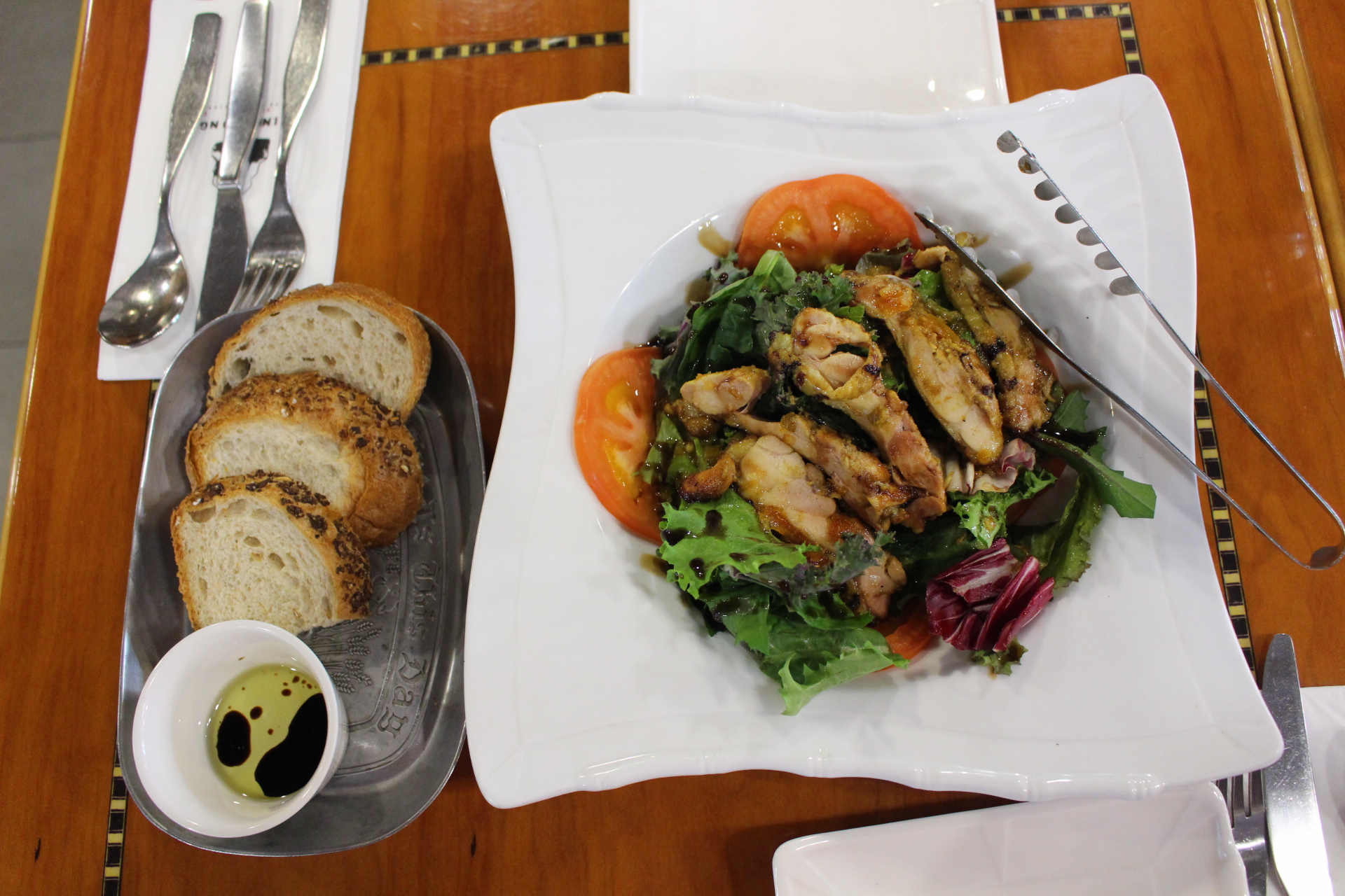 이어서 식전빵과 그릴치킨샐러드가 나왔는데요