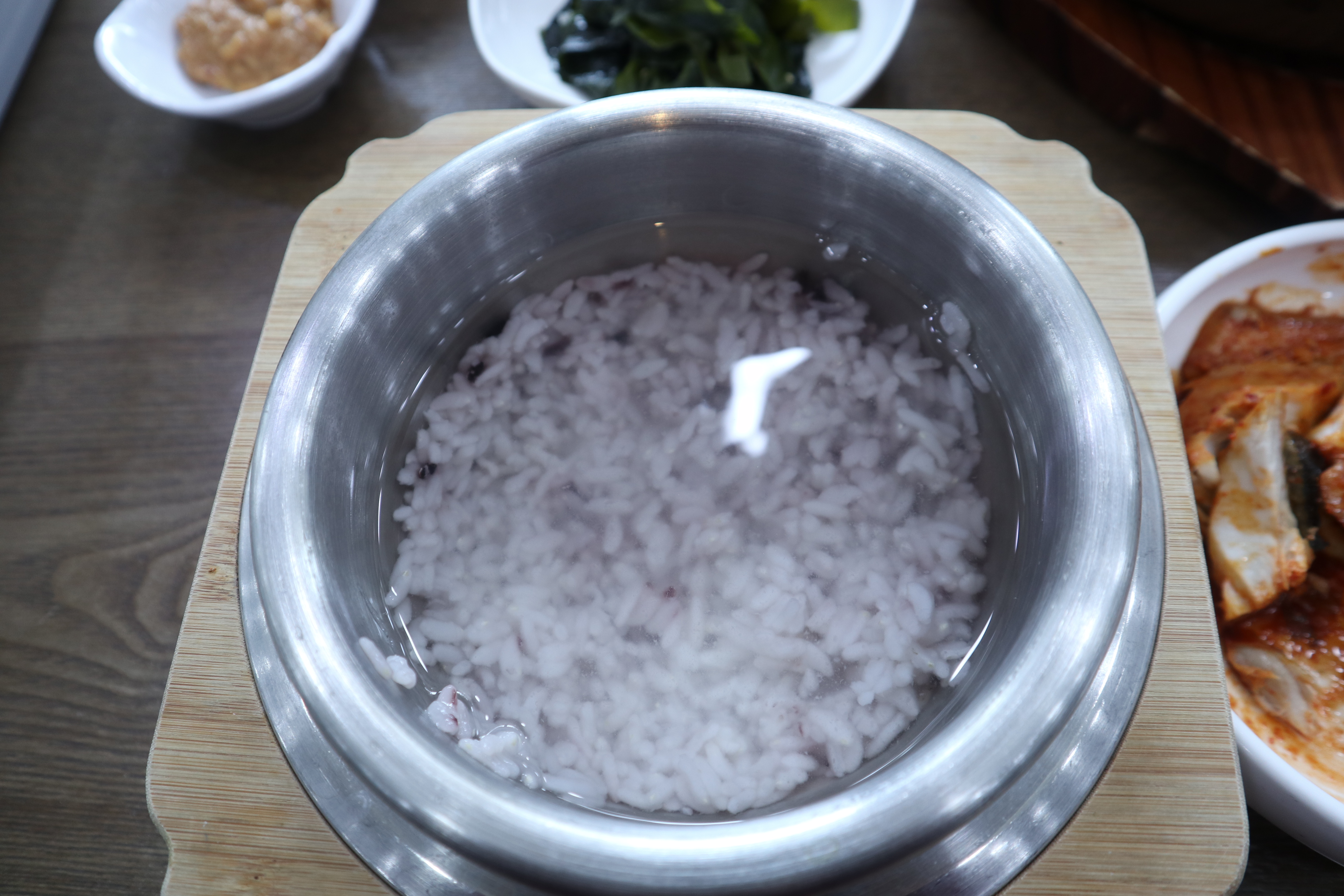 추가로 주문한 공깃밥도 다 먹고서 처음에 돌솥에 물을 부어