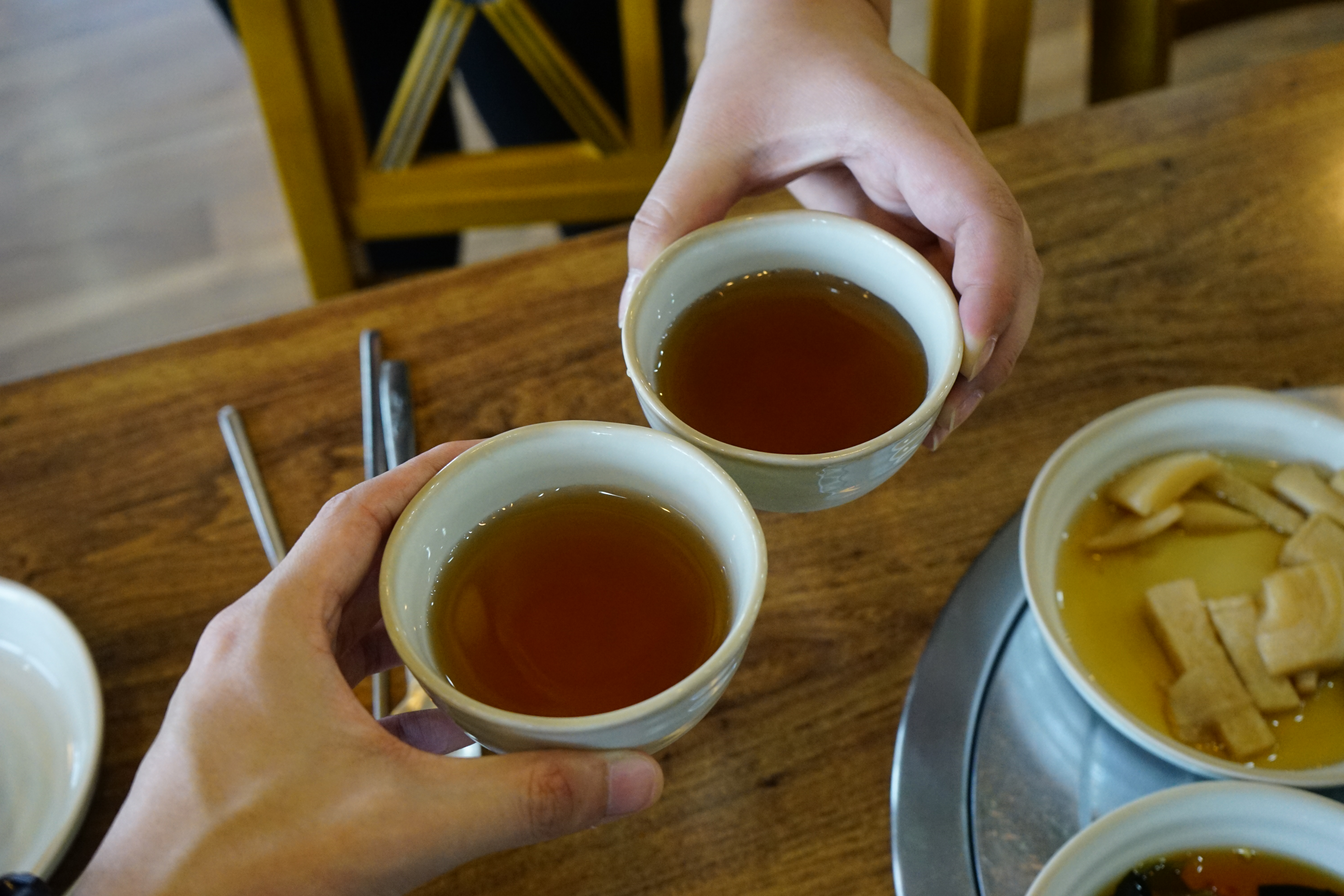 숙취해소와 자양강장에 좋은 약재를 달여서 육수에 첨가하여 조리한 메뉴랍니다...!