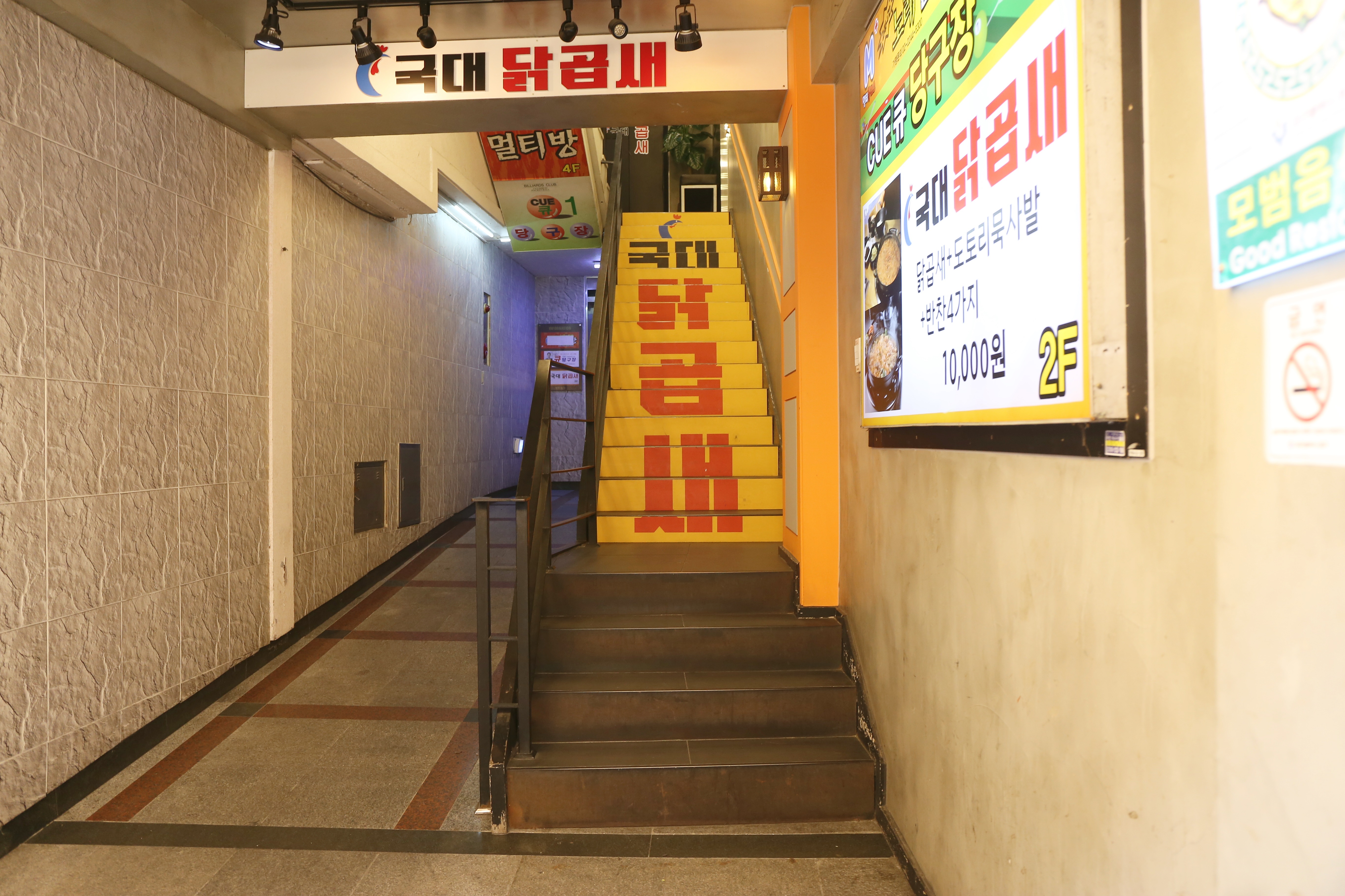 대구 동성로 맛집 , 북적거리는 사람들 사이사이로 걸어서 도착한 식당 간판이 상당히 정겨웠어요. 원색으로 칠해진 계단을 보니까 마치 애니메이션을 보는