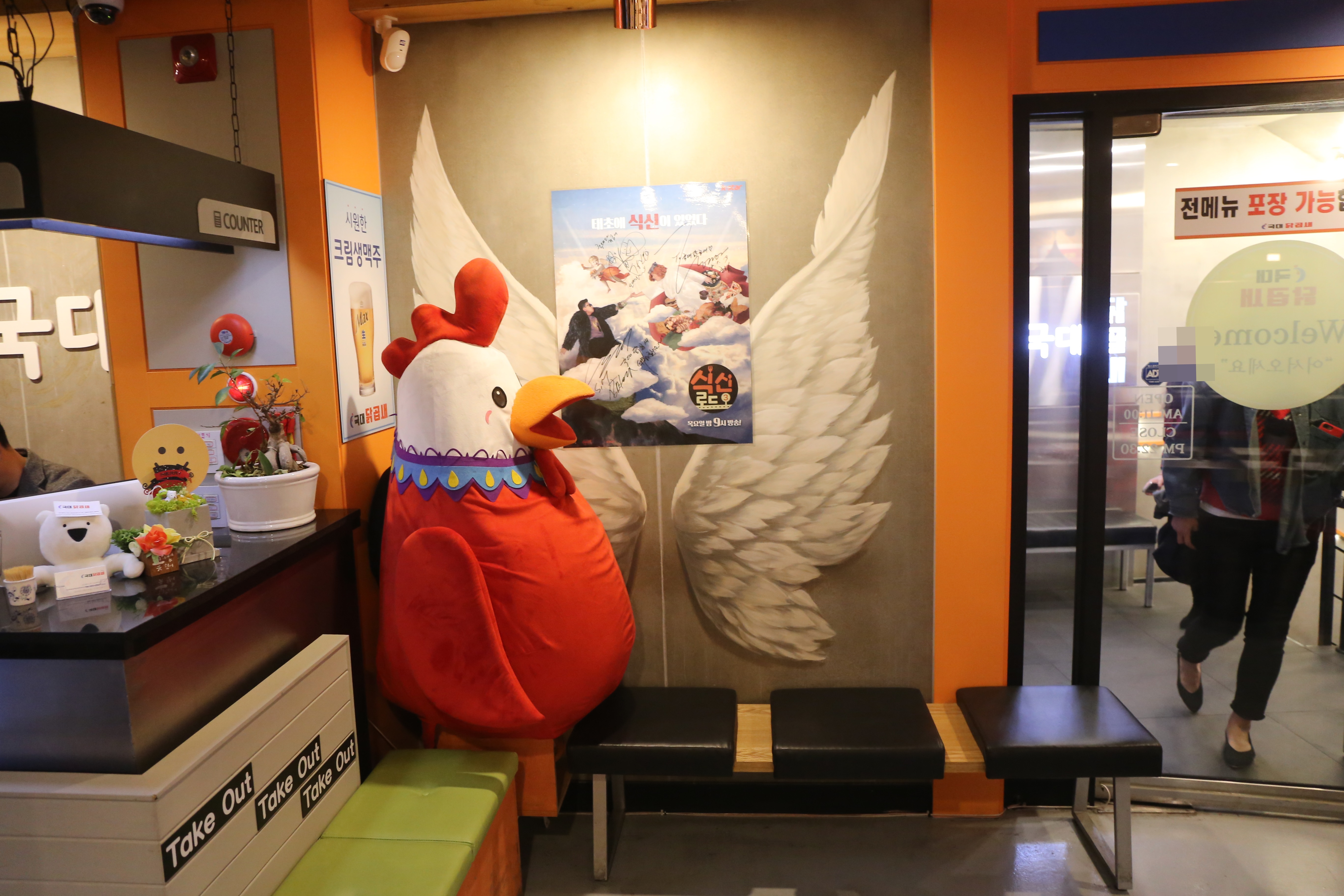 더욱 큰 포만감이 느껴졌습니다. 마치고 나오는 길 프론트 근처에서 귀여운 닭 캐릭터 인형을 발견할 수 있었는데요. 전메뉴는 포장도