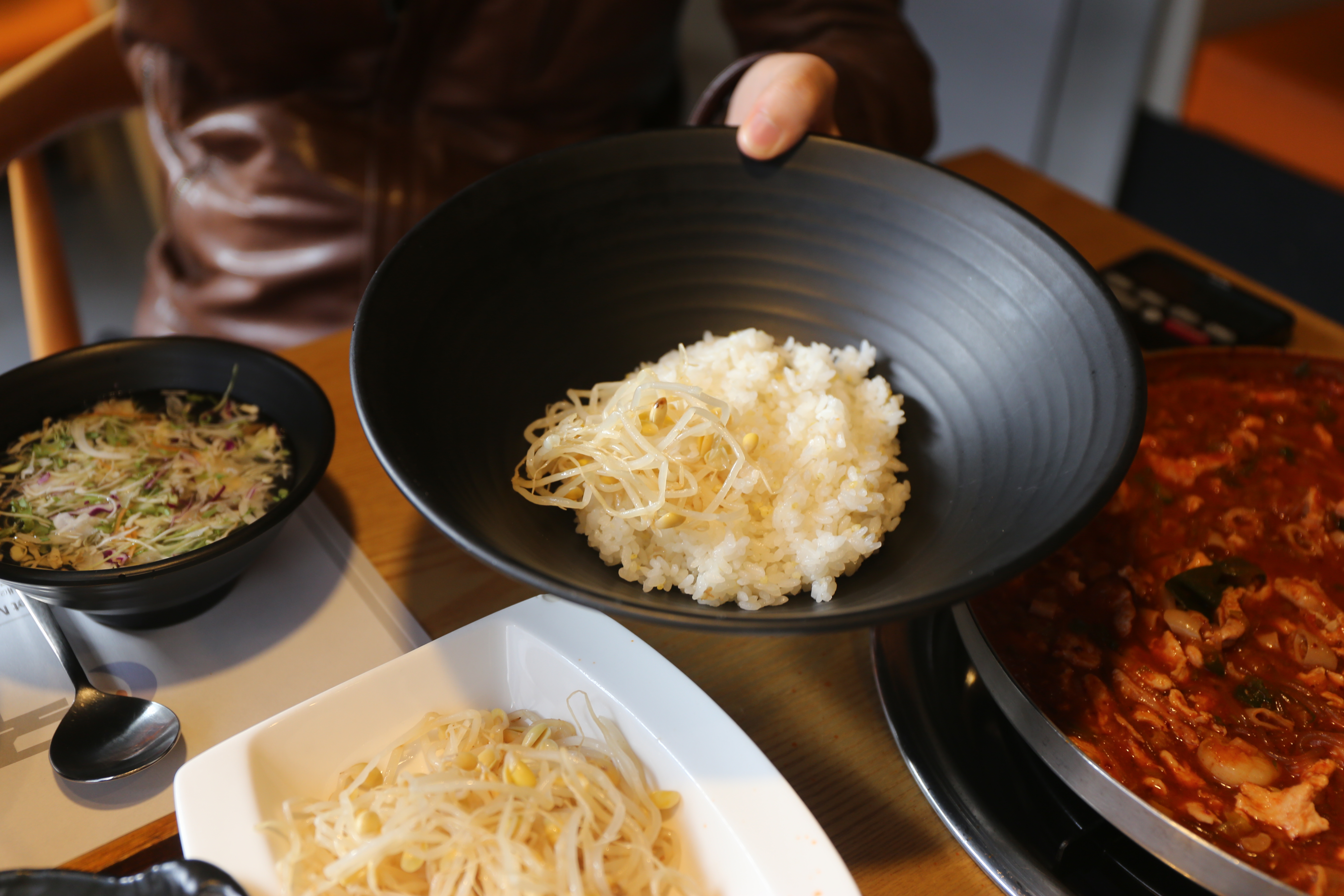 우러져 나온 선택이었어요. 넓다란 대접이라서 닭곱새를 밥 위에 얹어서 야무지게 비벼먹기에 딱 좋았답니다. 넓다란 그릇 안에 콩나물을