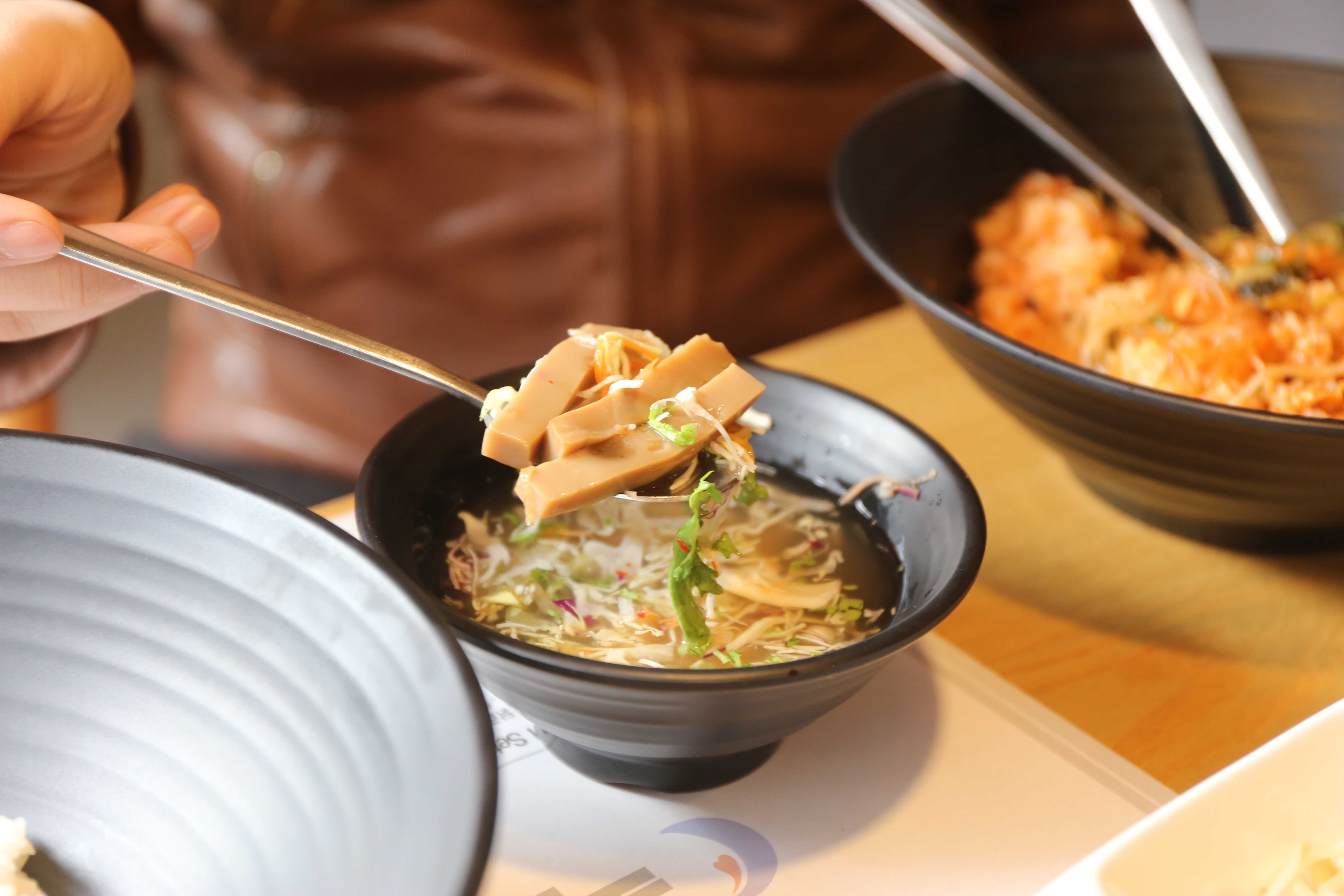 씹히는 채소가 듬뿍 들어가 있어서 먹으면서 입 속이 상쾌해졌습니다. 간만에 먹는 묵은 건강한 맛을 가지고 있었는데, 그렇다고 해서 맛이